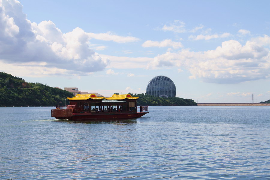 游船:游覽船分為龍舟、畫舫、大客船三種,采用環(huán)保節(jié)能動力。游船圍繞APEC雁棲島運行,能夠欣賞到風格獨特的APEC會場各式建筑,近距離感受中國建筑的宏偉與磅礴,體會中國傳統(tǒng)文化的博大精深。