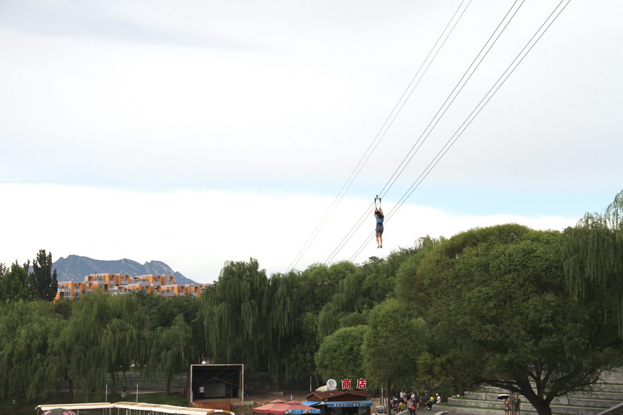 水上飛降:水上飛降全長250米,共設2條索道,高點設在金燈山上,降落點設在湖東岸,落差38米。索道速降時,游人站在高點平臺,系好安全帶,半分鐘內由金燈山速降至湖邊,安全可靠,可鍛煉膽量,還可以欣賞湖面風光,適合各種年齡游客乘坐。