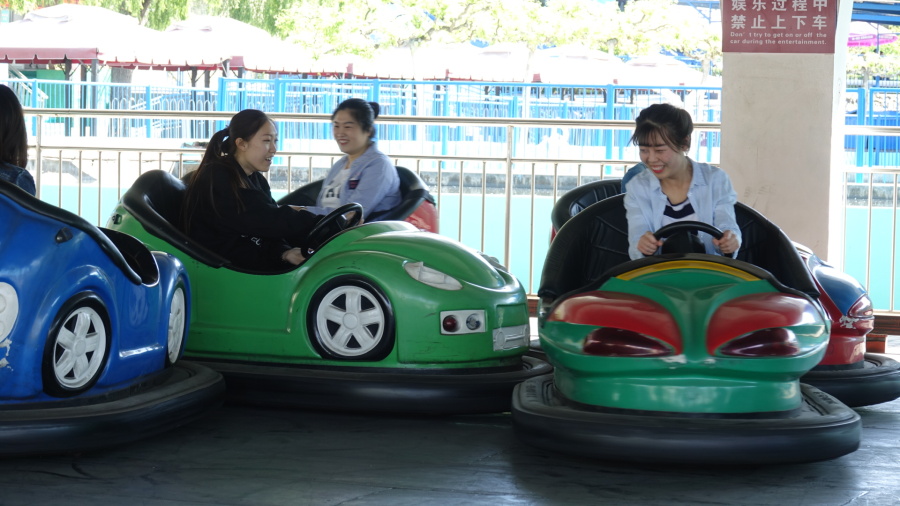 碰碰車:是一種機動游戲設施,車上一般最多坐二人。碰碰車操作簡便靈活,安全可靠,坐在車內踏住電極板即可運行,方向靈活多變,可以隨意沖撞、躲閃,老少皆宜,適合團體參與。