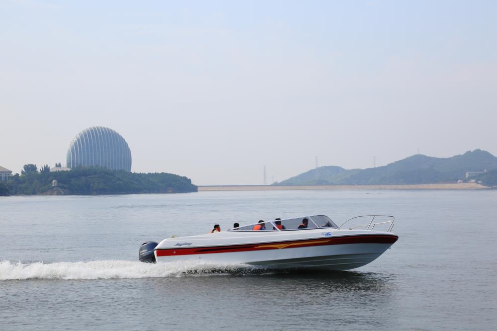 快艇:全采用日本雅馬哈整機,船體由玻璃鋼建成,駕駛輕便,速度快,最高時速可達60余公里。乘坐快艇,盡情馳騁于千米湖面,劈波斬浪中,充分領略雁棲湖自然山水美景和APEC會址的宏偉建筑。安全可靠,適合不同年齡的游客乘坐。