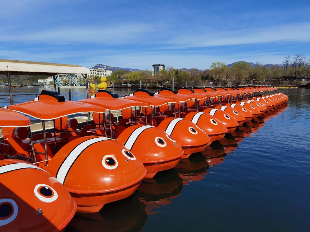 電瓶船:造型生動、美觀、色彩艷麗。艙內牽引電機,電瓶驅動,無污染,根據(jù)不同船型,可乘坐4人—6人。其中有大黃鴨電瓶船,造型逼真,栩栩如生,深受游客喜愛。