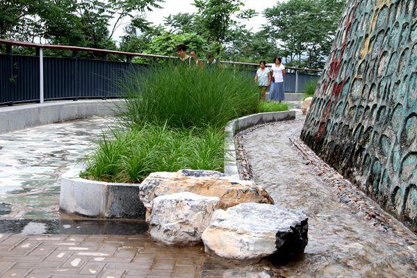 山體的另外一側(cè)順山勢而建的步道,結(jié)合山水園林景觀設(shè)計,潺潺的水流,精心設(shè)計的鵝卵石水道,光著腳進去踩一踩、趟一趟,為您找回了童年的美好記憶;嬌艷欲滴的鮮花、郁郁蔥蔥的綠色植物、近在耳邊的蟲蟬鳥鳴彰顯著夏日的濃重色彩。
