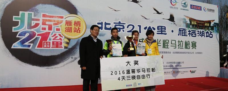 由《北京晨報(bào)》與北京雁棲湖生態(tài)發(fā)展示范區(qū)管理委員會(huì)、北京雁棲湖旅游區(qū)開發(fā)總公司聯(lián)合主辦,鈺誠(chéng)集團(tuán)冠名的“北京21公里”雁棲湖站鈺誠(chéng)杯半程馬拉松賽于2015年11月29日正式舉行。懷柔區(qū)副區(qū)長(zhǎng)任武軍、區(qū)委宣傳部常務(wù)副部長(zhǎng)樊曉娟、雁棲湖生態(tài)發(fā)展示范區(qū)常務(wù)副主任彭明祥、北京雁棲湖旅游區(qū)開發(fā)總公司總經(jīng)理徐明杰等領(lǐng)導(dǎo)出席了開幕式。體操世界冠軍、北京奧運(yùn)會(huì)火炬手畢文靜和演員李茂助賽領(lǐng)跑,500余位跑友競(jìng)相角逐。 閱讀更多