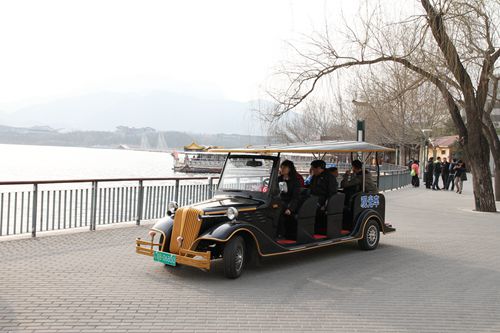 為更好滿足遊客多樣化需求,盡情飽覽 “雁棲湖?國際會(huì)都”美景和2014APEC會(huì)議會(huì)址,去冬今春以來,雁棲湖景區(qū)積極配合示範(fàn)區(qū)管委會(huì)集中組織實(shí)施了旅遊服務(wù)運(yùn)行系統(tǒng)14項(xiàng)具體建設(shè)工程。先行投入試運(yùn)營的 9 輛旅遊觀光電瓶車,其觀光路線為雁棲湖景區(qū)南門,經(jīng)雁棲湖路,至P5停車場(chǎng),是雁棲湖生態(tài)發(fā)展示範(fàn)區(qū)環(huán)湖慢行系統(tǒng)的組成部分。該觀光車外觀造型參考國外舊式老爺車設(shè)計(jì),既有復(fù)古風(fēng)格,更具現(xiàn)代文化氣息,乘坐觀光電瓶車四處遊覽,既能滿足遊客休閑體驗(yàn)的心理需求,又充分體現(xiàn)著“綠色低碳、安全便捷、健康時(shí)尚”的旅遊消費(fèi)理念。