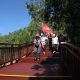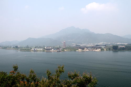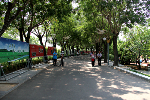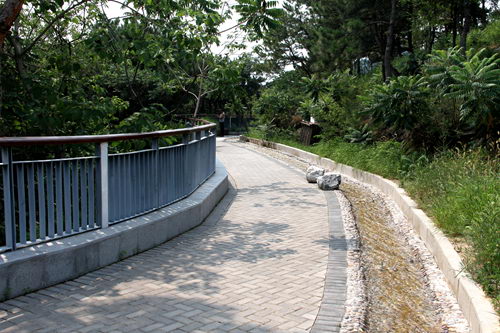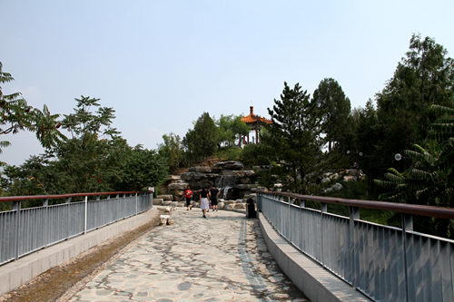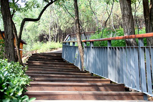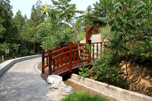這條線路平緩適度,既可登山健身,又能欣賞湖光山色,整條線路3千米,可以隔湖遠望APEC會址建筑、近距離觀賞景區(qū)各式園林小品,盡情游覽湖光山色、俯瞰APEC會址全貌和雁棲湖全景,行走林間小路盡情呼吸飽含負氧離子的清新空氣。位于雁棲湖景區(qū)東岸的金燈山是景區(qū)較佳的觀景點,登上金燈山放眼四望,重巒疊嶂的軍都山、綿延起伏的萬里長城、巍峨宏偉的紅螺山如詩如畫;具濃郁的有中國文化氣息的各式建筑錯落有致的遍布核心島上,形成了規(guī)模宏大的中國園林,又宛如一個巨大的山水盆景令人心曠神怡。為滿足游客登山觀景的需求,景區(qū)將原有登山步道寬度由1米加寬至2米,改造為林下景觀木棧道,間隔80米增設一處休息平臺。原有上山路改造為景觀游憩路,道路一側增加1米寬溪流,另一側增加行道樹(白蠟樹)。間隔100米增加座椅等休息設施。同時在山頂開辟了休閑廣場,增添假山疊瀑,修復遠望亭,將環(huán)繞遠望亭的山路鋪裝改造成為觀景木平臺,遠望亭與木平臺結合形成一處立體觀景場所。