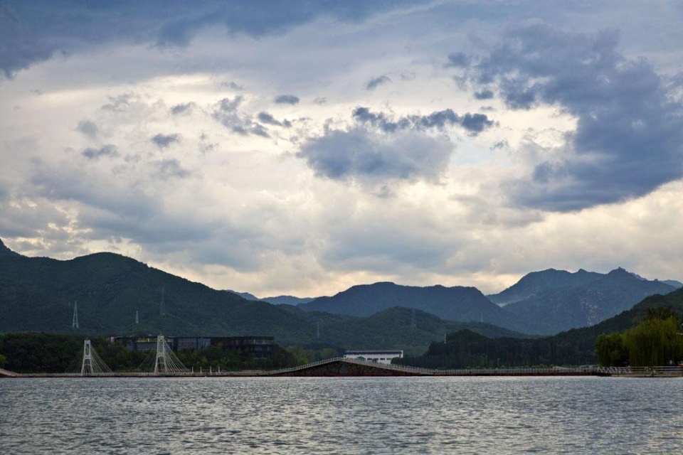 如僅有崢嶸的風(fēng)骨還會感覺缺少一點柔軟的元素。雁棲湖正是極好的證明了這個設(shè)定。數(shù)頃碧波蕩漾的湖水,幾縷楊柳依水?dāng)[動,頃刻間就化解了燕山鐵骨錚錚的堅硬。在這里充分展示了陽與陰,山與水,湖與柳,橋與亭,古典與現(xiàn)代,人與自然的和諧組合。讓人留戀止步,久久不愿離去。