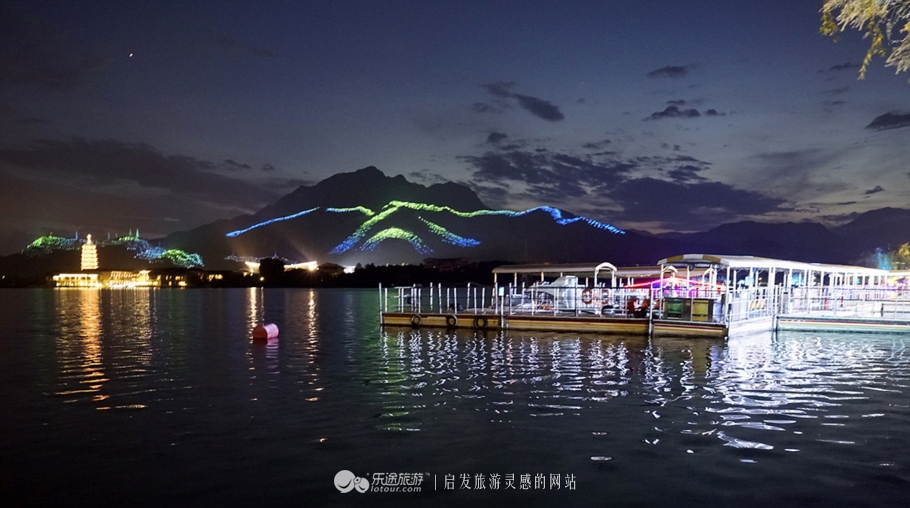 景區(qū)被彩燈裝飾的美輪美奐。行走在沿湖小路上,山邊、湖邊、湖水中以及那遙遠的地方都變換著色彩,讓你目不暇接。