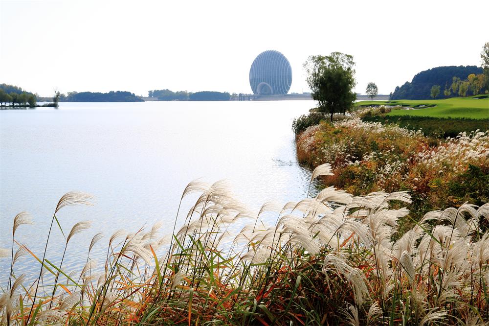 在京郊懷柔城北8公里處的燕山腳下,有一處風(fēng)光迤邐的水上樂園——雁棲湖。初冬的雁棲湖美的實(shí)在不像話,沿著棧道登上雁棲湖湖畔的山,日出東方酒店在對(duì)岸矗立,黃櫨葉子已經(jīng)紅透,湖畔蘆葦色彩金黃,秋色漸褪,冬天來了!