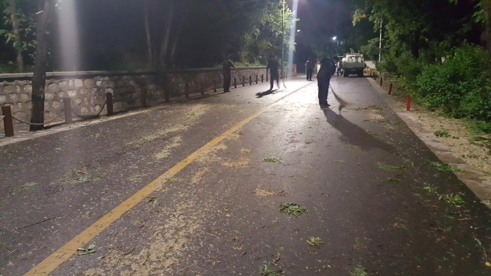 5月12日晚6點(diǎn)左右突降大雨,雁棲湖示范區(qū)內(nèi)樹(shù)木傾倒2棵、劈裂樹(shù)杈約有20余處,路面淤泥50余處,部分路面淤泥幾乎侵占了整幅路面,嚴(yán)重影響路面整潔,阻礙了車(chē)輛正常通行。