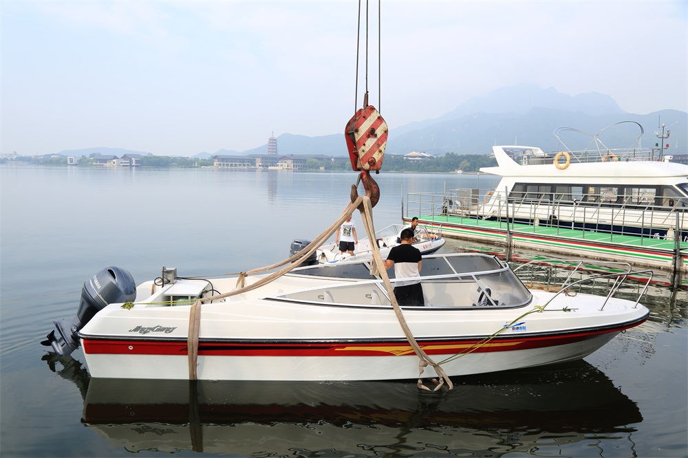 通過廠家近兩個月的緊張生產(chǎn),8月10日,第一艘燃汽動力快艇落戶雁棲湖。