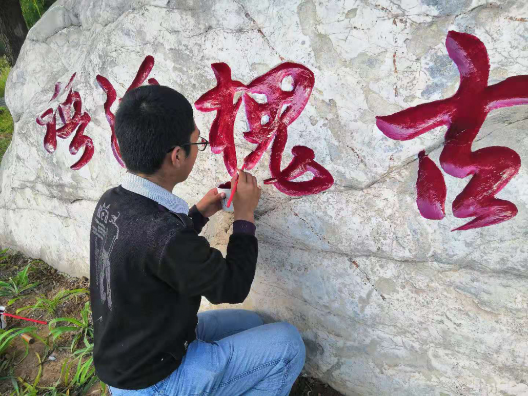 2019年9月21日至9月23日,棲湖物業(yè)公司工程部對示范區(qū)環(huán)境整治和景觀提升項目中的三處景石進行了刻字,分別為“古槐溪語”、“西山棧道”、“老圃問槐”。