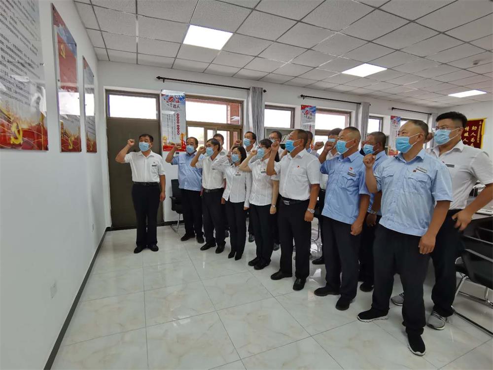 活動中,全體黨員在支部書記彭興啟同志的帶領(lǐng)下重溫了入黨誓詞,黨員們面對鮮紅的黨旗,高舉右手,握緊拳頭,莊嚴(yán)宣誓詞。