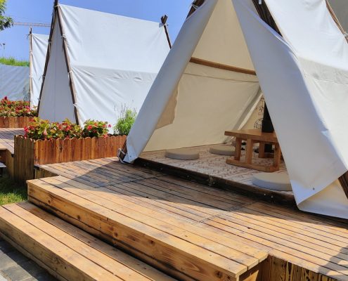 同時為了保護社交和露營的私密性,計劃采取院落式,項目開發(fā)分為兩期:一期在西側(cè),為11個,以休閑餐飲為主的區(qū)域。 二期在東側(cè),適時打造以住宿為主的休閑露營區(qū)域。