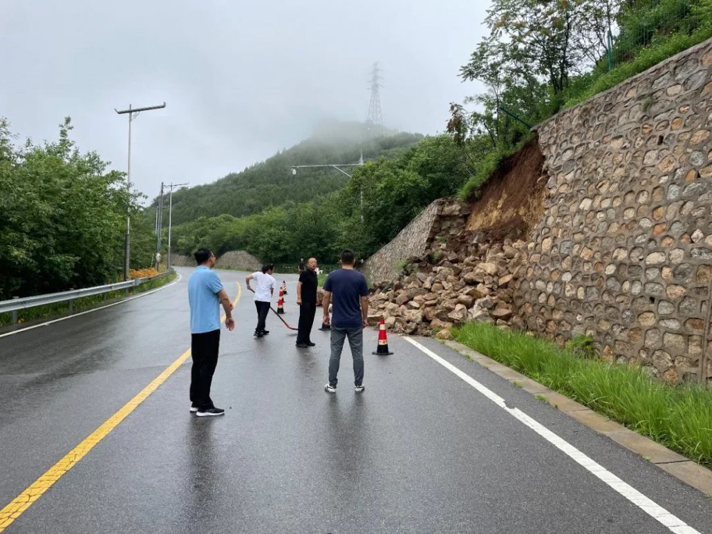 受連續(xù)降雨影響,7月13日凌晨,紅雁路段自東向西500米處發(fā)生塌方,碎石滾落在道路中間,造成單方向道路受阻。由於塌方路段位於道路急轉(zhuǎn)彎處,極易發(fā)生危險,棲湖物業(yè)公司接報後立即啟動應(yīng)急預(yù)案,及時趕赴現(xiàn)場,安排清障車1輛,組織9名搶險人員進行清理現(xiàn)場,於上午8時前將道路清理完畢恢復(fù)交通。由於該區(qū)域護坡存在二次塌方危險,搶險人員在道路兩側(cè)擺放減速路牌,設(shè)立隔離擋牆,安排巡查人員隨時觀察山情況,避免危險發(fā)生。由於清理及時,未造成人員傷亡和車輛損失。