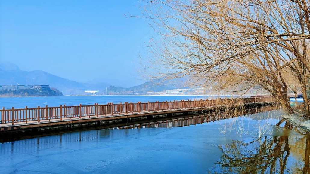 雁棲湖有著“風(fēng)翻白浪花千片,雁點(diǎn)青天字一行”的美名,四季常青的雁棲湖在冬季里也有著它獨(dú)特的美景,在這清凈的冬日里,我們可以一起漫步在湖畔棧道,回憶著一年里的點(diǎn)點(diǎn)滴滴,感受著來自雁棲湖冬季的浪漫,體驗(yàn)著大自然帶來的魅力。冬日的雁棲湖上,結(jié)了薄冰,透明的湖面,猶如一面水鏡,在陽(yáng)光的照耀下晶瑩剔透,閃閃發(fā)光,湖面有成群的野鴨悠閑自在地嬉戲,還有一對(duì)對(duì)色彩斑斕的鴛鴦在湖面暢游。萌寵樂園里的小動(dòng)物也為能夠和游客們共迎接新年而滿懷期待,我們可以和羊駝、矮馬、小兔等小動(dòng)物一起玩?;?dòng)。
