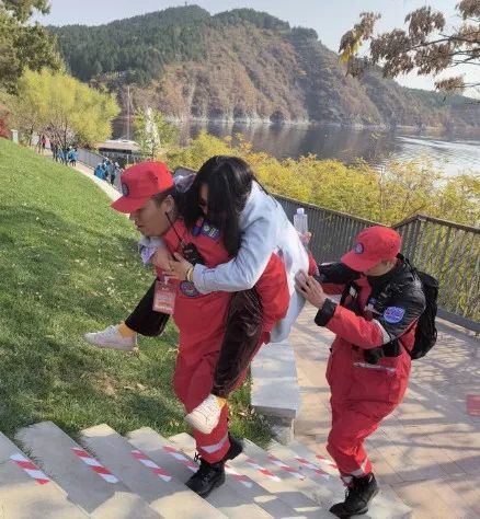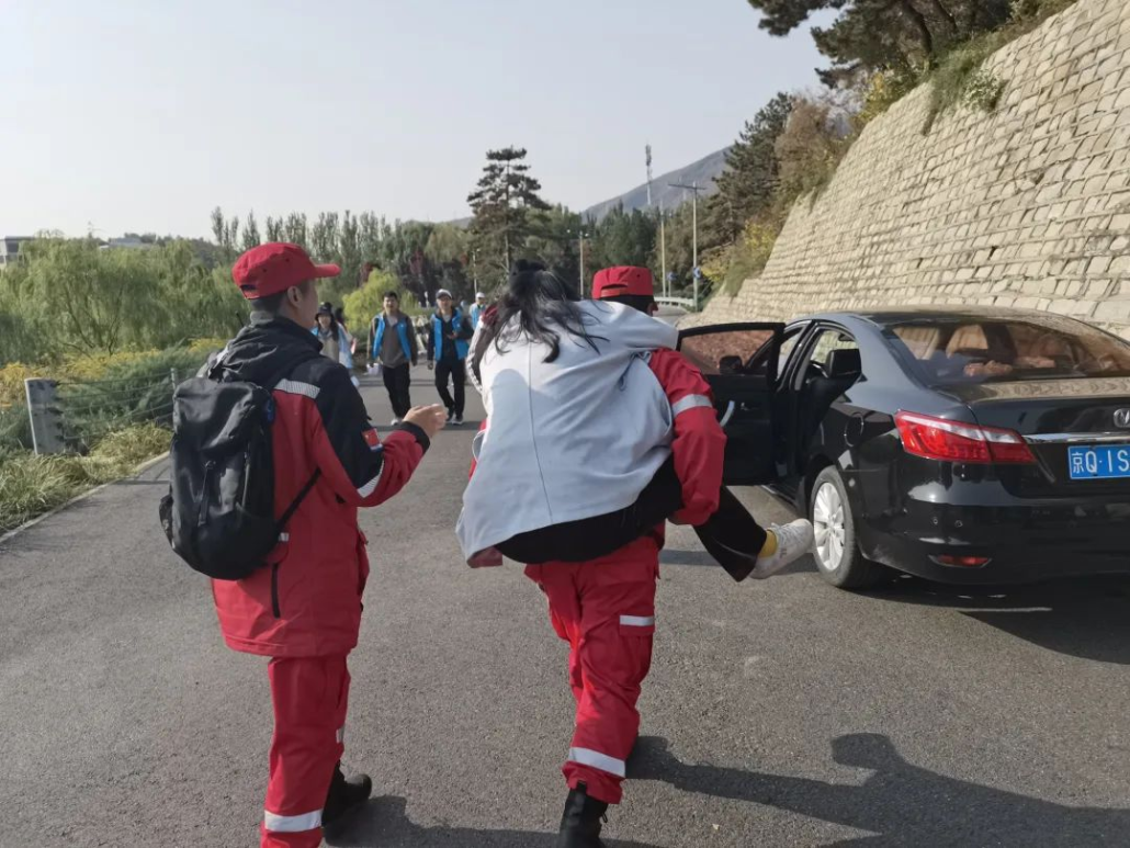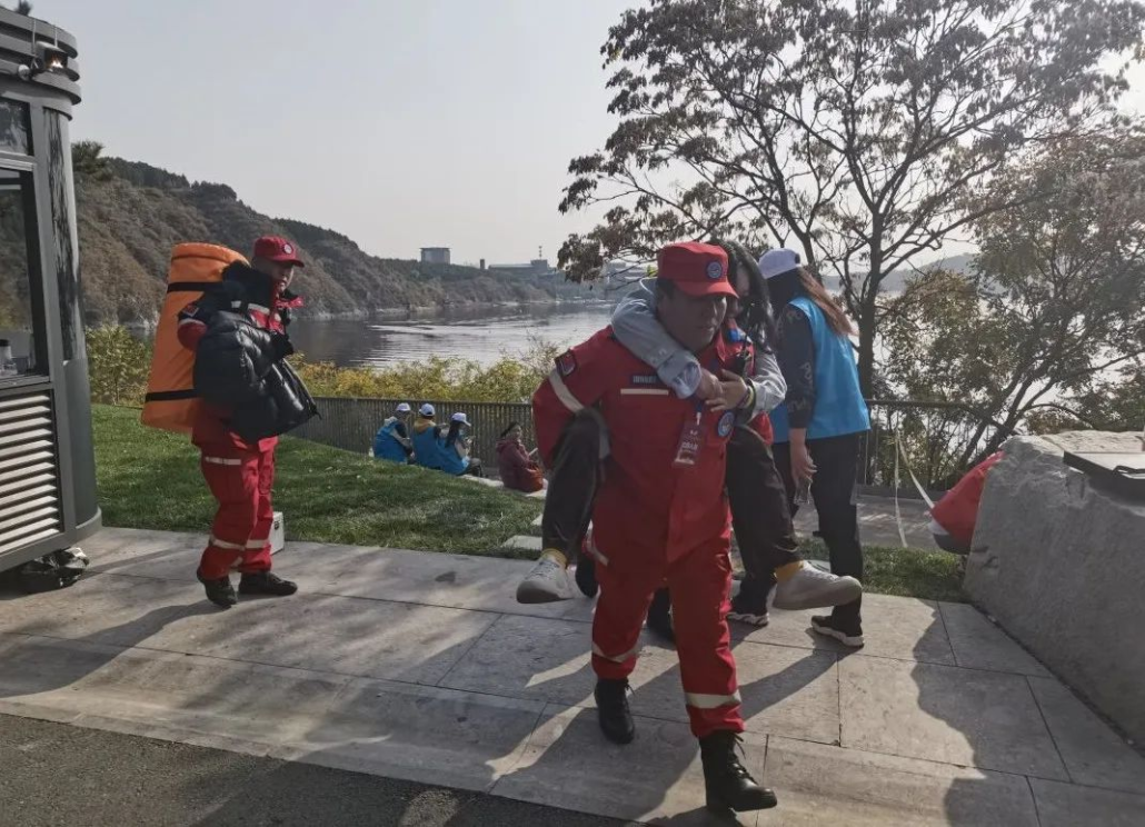 一名女士不慎崴腳現(xiàn)場保障人員積極展開救援齊心協(xié)力將受傷女子