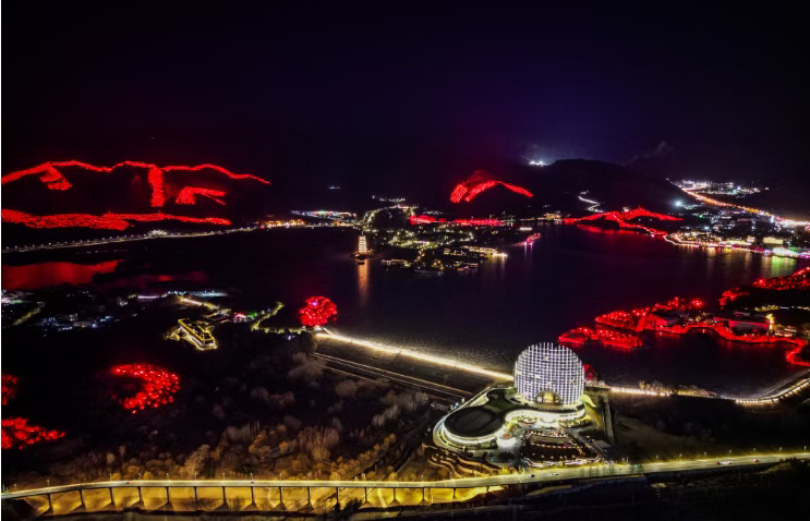 夜幕下的雁棲湖別具韻味。華燈初上,湖面倒映著璀璨燈光,與滿天繁星交相輝映。游客們乘船游湖,感受著微風拂面的愜意,欣賞著精心打造的光影景觀。湖畔的精彩演藝、特色美食和互動活動,更為夜游體驗增添了無限樂趣。