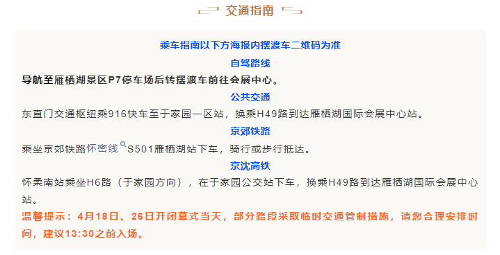 從市區(qū)出發(fā),沿京承高速或京密路直達(dá)懷柔,乘坐擺渡車至雁棲湖國際會展中心。可掃描下方二維碼獲取擺渡車時刻表及路線導(dǎo)航。