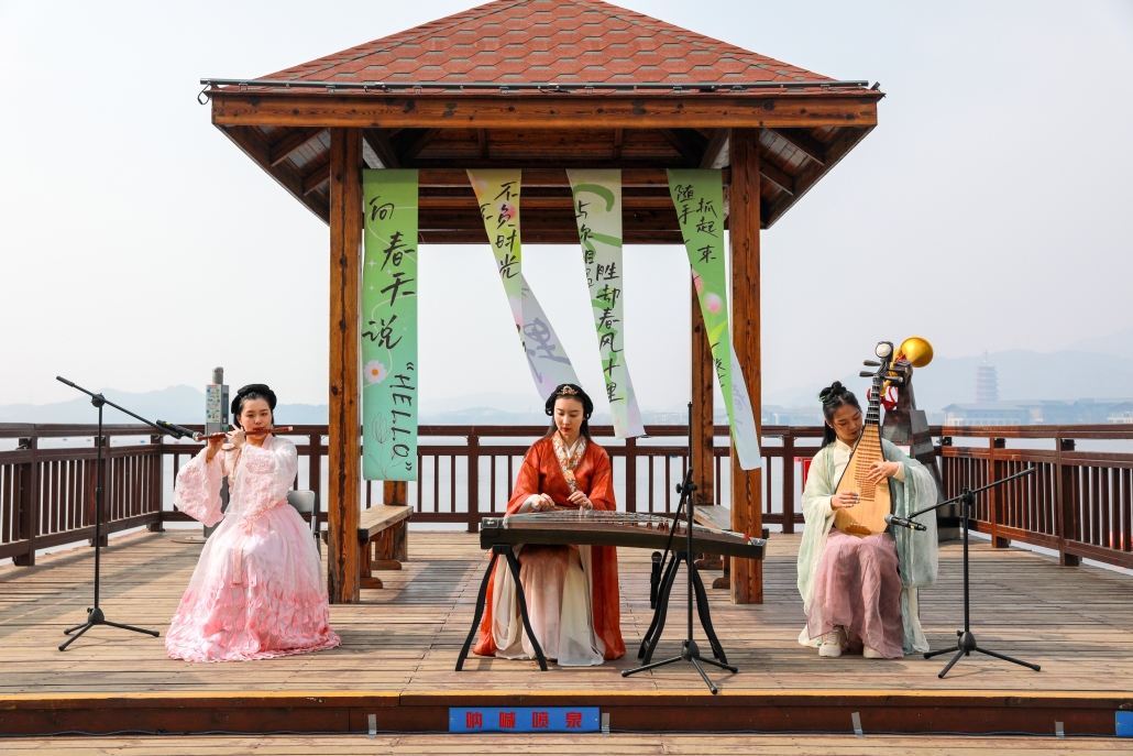 漫步在美麗湖光山色中,帶著手工制作的團(tuán)扇,欣賞著漢唐服和傳統(tǒng)禮樂表演……這個(gè)春天,在雁棲湖景區(qū),市民游客可盡情體驗(yàn)獨(dú)特的“中式浪漫”。