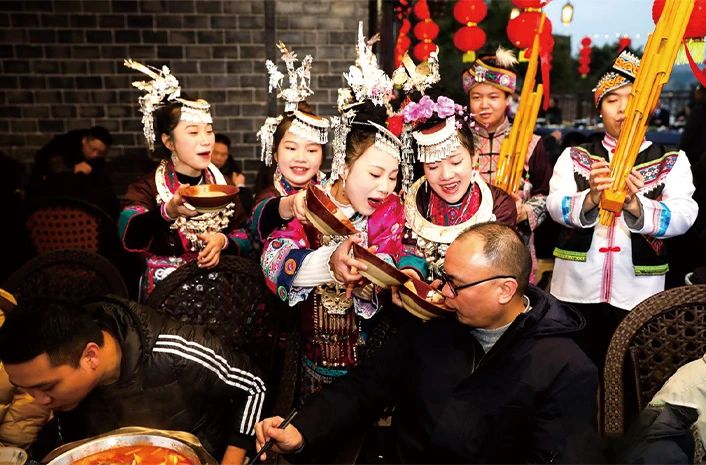 迎門酒是苗族的一種古老習(xí)俗,是苗寨廣為盛行和具有特色的一種迎賓方式,也是苗家人待客的最高禮遇。
