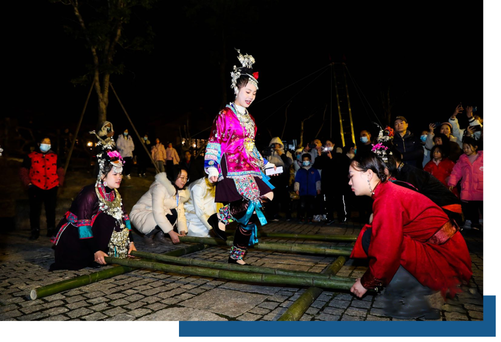 趕秋是苗族歡慶豐收的節(jié)日秋日來臨,收獲在望,歡慶豐收青年男女穿起盛裝跳起歡樂的蘆笙舞歡聚一堂,慶祝豐收,男女老少自擇對手進(jìn)行對歌比賽。隱藏互動玩法:苗族歌舞表演、竹坐舞互動、蘆笙舞迎賓互動、打粒耙互動體驗(yàn) 。