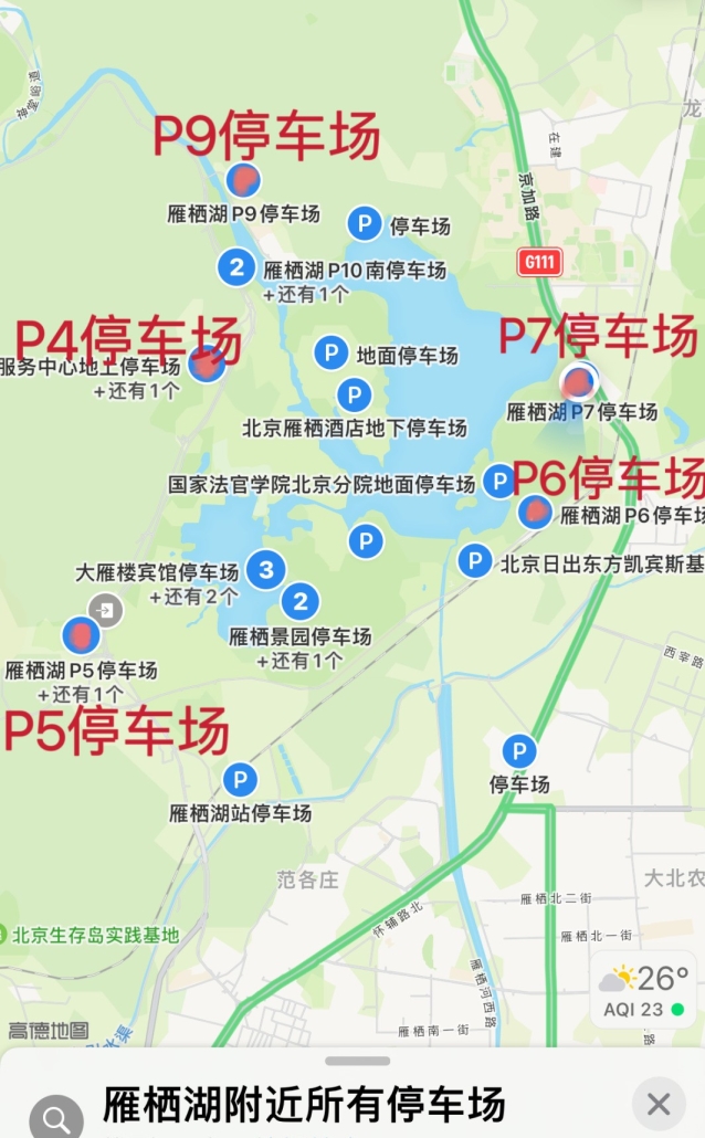 下圖為雁棲湖景區(qū)周邊停車場分布圖