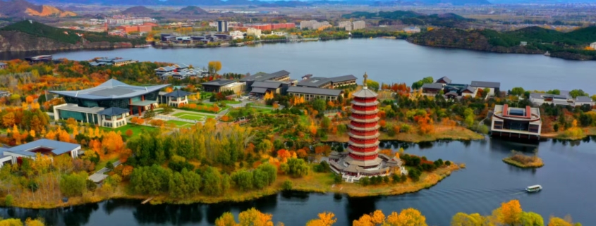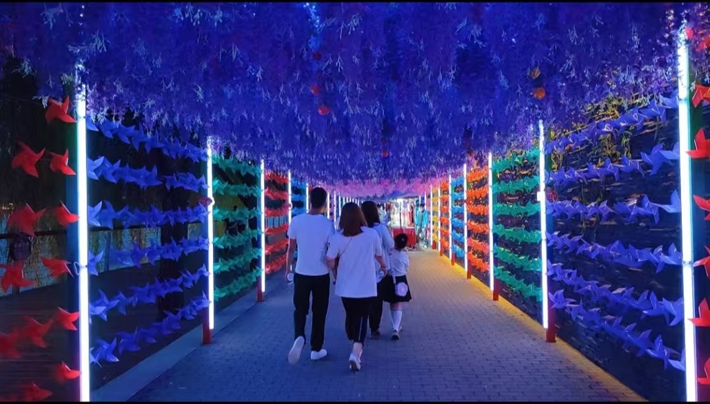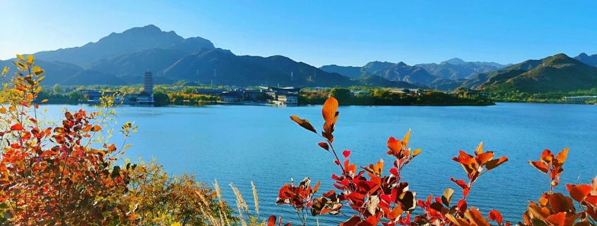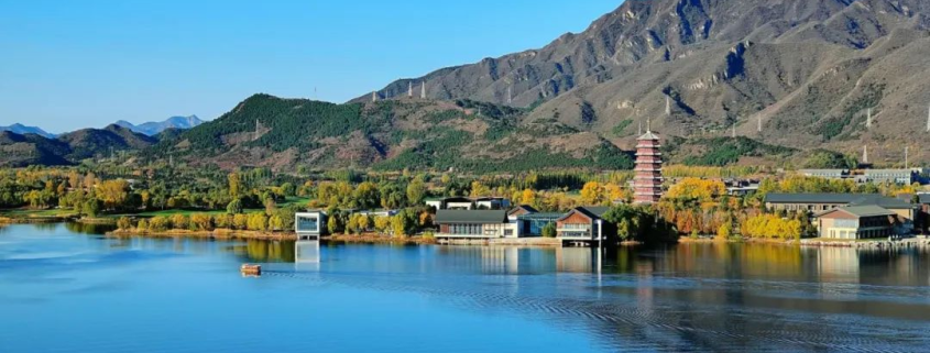 途經(jīng)雁棲塔、日出東方酒店,遠(yuǎn)眺國際會議中心與現(xiàn)代建筑的幾何美學(xué),與古剎紅螺寺遙相輝映。航程中,山花倒映湖面,宛如“舟行畫中游”。