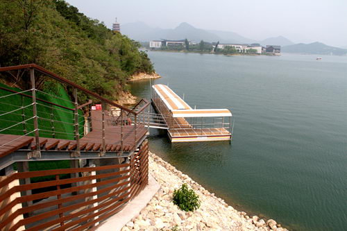 環(huán)湖游水上游覽路線共設(shè)三個(gè)碼頭,除雁棲湖景區(qū)內(nèi)游船碼頭外,在雁棲湖北岸古槐溪語(yǔ)公園和雁棲湖路大壩觀景平臺(tái)增建兩座游船碼頭,同時(shí)開(kāi)辟停車場(chǎng)、旅游服務(wù)中心、公共衛(wèi)生間、商業(yè)網(wǎng)點(diǎn)的公共配套旅游服務(wù)設(shè)施。雁棲湖環(huán)湖游水上線路的開(kāi)通,不僅滿足了游客近距離觀看雁棲島、國(guó)際會(huì)議中心、雁棲塔、日出東方酒店的需求,更為游客提供了便捷的水上交通工具,極大地減輕雁棲湖地區(qū)的交通和停車壓力,能夠?qū)崿F(xiàn)雁棲湖南北兩地和景區(qū)內(nèi)游客自由往來(lái)。