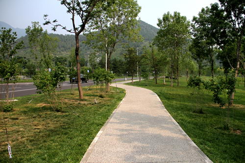 這條線路平緩適度,既可登山健身,又能欣賞湖光山色,整條線路3千米,可以隔湖遠(yuǎn)望APEC會(huì)址建筑、近距離觀賞景區(qū)各式園林小品,盡情游覽湖光山色、俯瞰APEC會(huì)址全貌和雁棲湖全景,行走林間小路盡情呼吸飽含負(fù)氧離子的清新空氣。位于雁棲湖景區(qū)東岸的金燈山是景區(qū)佳的觀景點(diǎn),登上金燈山放眼四望,重巒疊嶂的軍都山、綿延起伏的萬(wàn)里長(zhǎng)城、巍峨宏偉的紅螺山如詩(shī)如畫;具濃郁的有中國(guó)文化氣息的各式建筑錯(cuò)落有致的遍布核心島上,形成了規(guī)模宏大的中國(guó)園林,又宛如一個(gè)巨大的山水盆景令人心曠神怡。為滿足游客登山觀景的需求,景區(qū)將原有登山步道寬度由1米加寬至2米,改造為林下景觀木棧道,間隔80米增設(shè)一處休息平臺(tái)。原有上山路改造為景觀游憩路,道路一側(cè)增加1米寬溪流,另一側(cè)增加行道樹(shù)(白蠟樹(shù))。間隔100米增加座椅等休息設(shè)施。同時(shí)在山頂開(kāi)辟了休閑廣場(chǎng),增添假山疊瀑,修復(fù)遠(yuǎn)望亭,將環(huán)繞遠(yuǎn)望亭的山路鋪裝改造成為觀景木平臺(tái),遠(yuǎn)望亭與木平臺(tái)結(jié)合形成一處立體觀景場(chǎng)所。