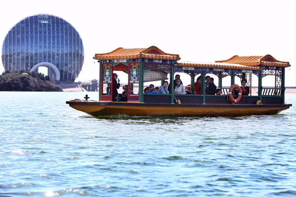 雁棲湖環(huán)湖游水上線路正式通航,雁棲湖APEC會(huì)址全景游再添一條特色線路。