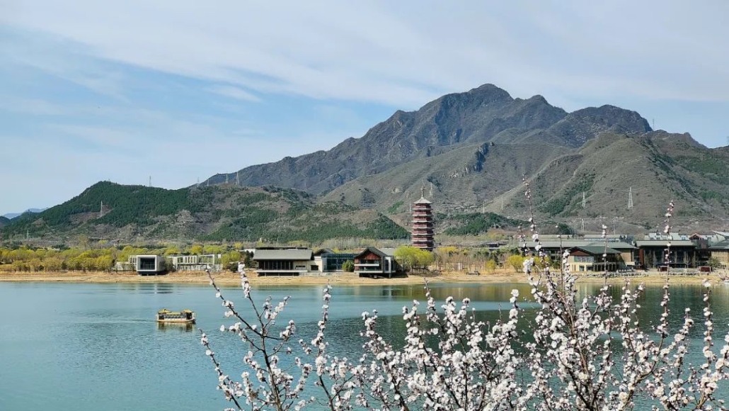 途經(jīng)雁棲塔、日出東方酒店,遠(yuǎn)眺國際會(huì)議中心與現(xiàn)代建筑的幾何美學(xué),與古剎紅螺寺遙相輝映。航程中,山花倒映湖面,宛如“舟行畫中游”。