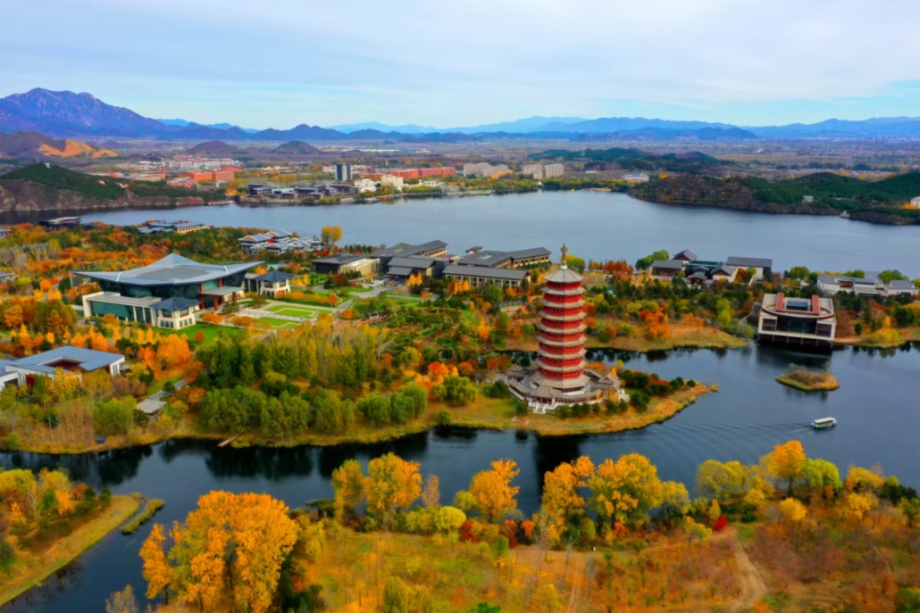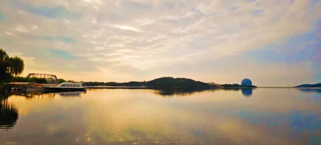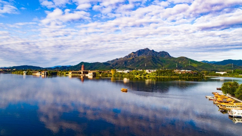 途經(jīng)雁棲塔、日出東方酒店,遠(yuǎn)眺國際會議中心與現(xiàn)代建筑的幾何美學(xué),與古剎紅螺寺遙相輝映。航程中,山花倒映湖面,宛如“舟行畫中游”。